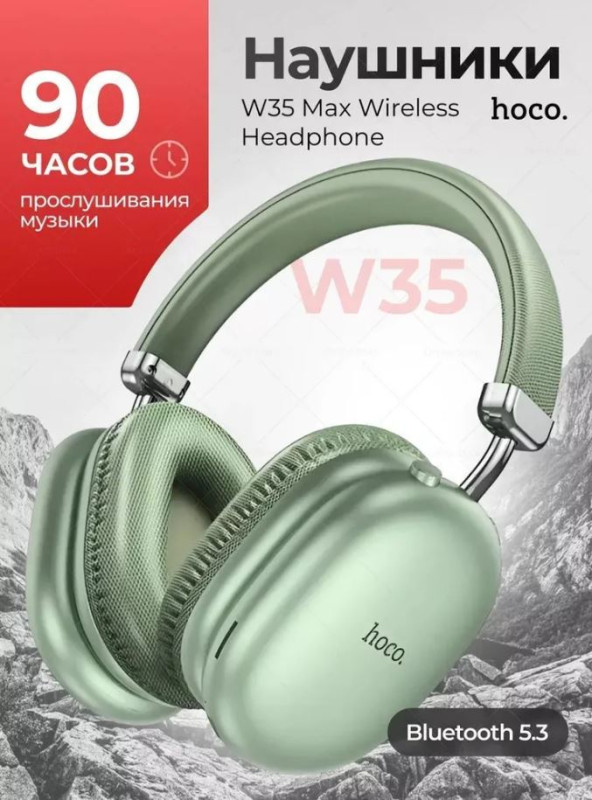 Беспроводные/проводные наушники Hoco W35 Max зеленого цвета фиксируется на голове с помощью регулируемого оголовья. Поворотные чаши позволяют в любой момент отодвинуть амбушюры от уха. Так вы сможете слышать происходящее вокруг. Функция будет удобна на улице или офисе, где надо всегда мониторить обстановку. Встроенный микрофон позволяет использовать модель, как гарнитуру. Наушники подойдут для геймеров или тех, кто работает удаленно.