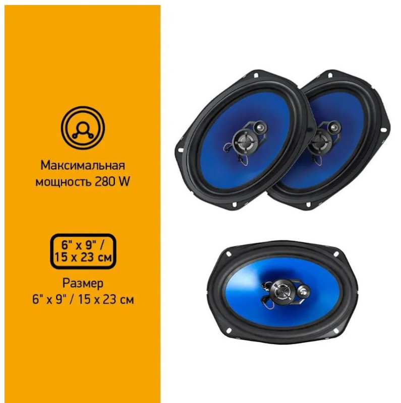 Представленные колонки автомобильные DOGMA DCA-K693 легко установить в салоне автотранспортного средства за счет 4 небольших отверстий, расположенных в металлической корзине. Акустическая система имеет максимальную мощность 280 Вт.