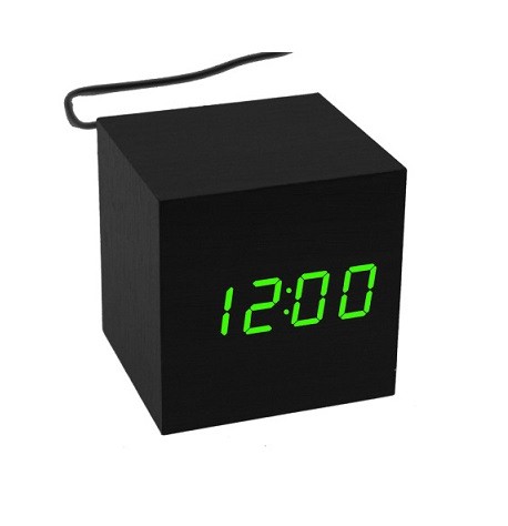 Стильный будильник из дерева, который послужит отличным напарником каждое утро, и просто красивым элементом в дизайне интерьера. На большом экране отображается время, день недели, а также температуру. В комплекте USB кабель для зарядки.