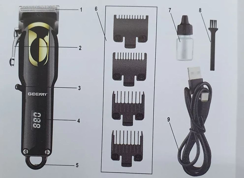 Машинка для стрижки волос Geemy очень удобна в использовании и подходит для взрослых, детей и домашних животных. Так же она может являться отличным подарком на любой праздник. Эргономичная форма позволяет контролировать каждое движение прибора, обеспечивая полный комфорт. Вы можете установить длинны при помощи насадок . Насадки предназначены не только для стрижки волос, но и для усов и бороды. Встроенный триммер позволяет подравнивать контуры стрижки и создавать эффектные детали. Низкий уровень шума обеспечивает спокойную и комфортную атмосферу во время процесса стрижки. Закругленные лезвия и гребни предотвращают раздражение кожи. Этот семейный триммер для стрижки волос Geemy понравится и вам, и вашему ребенку. Мощный мотор работает качественно и без вибраций. Самозатачивающиеся лезвия из нержавеющей стали дольше остаются острыми, не требуют специального ухода и обеспечивают великолепные результаты стрижки. Время автономной работы 150 минут после 1,5 часов зарядки встроенного аккумулятора.
