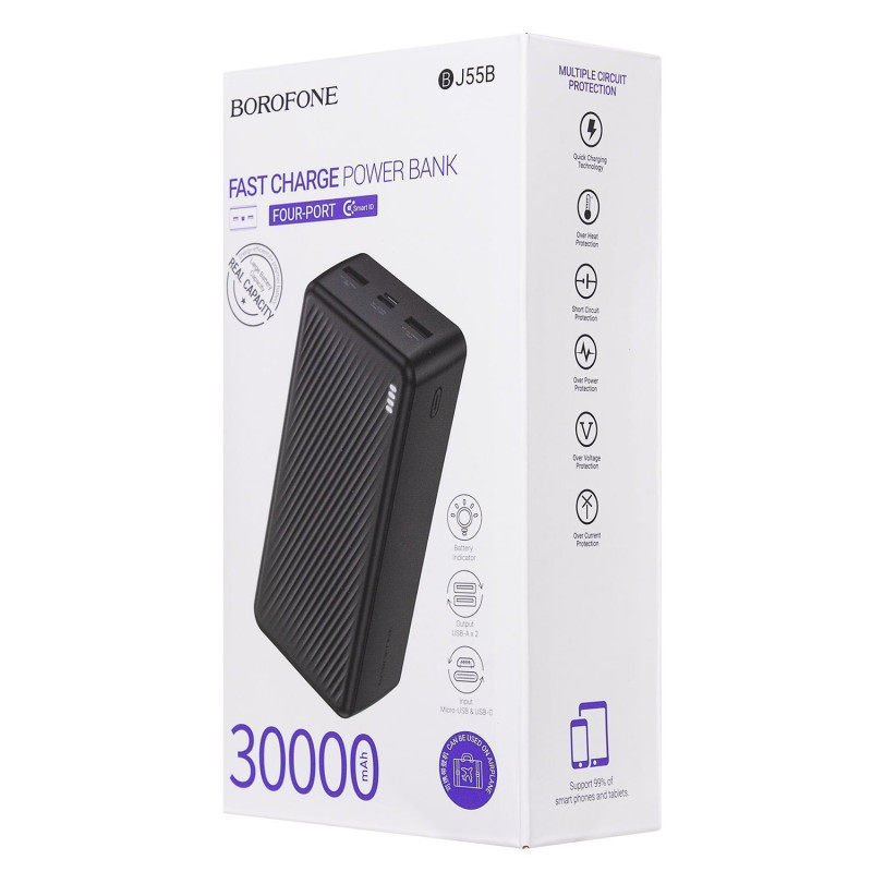 Внешний аккумулятор Borofone BJ55B 30000 mAh — это надежное и простое в использовании портативное зарядное устройство, которое станет незаменимым помощником для активных и деловых людей.