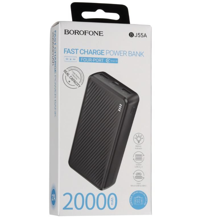 Borofone BJ55A оснащён несколькими портами, что позволяет одновременно подзаряжать несколько устройств. Это особенно удобно, когда вы находитесь в пути или в компании друзей. Устройство поддерживает различные технологии быстрой зарядки, так что ваше время не будет тратиться впустую.