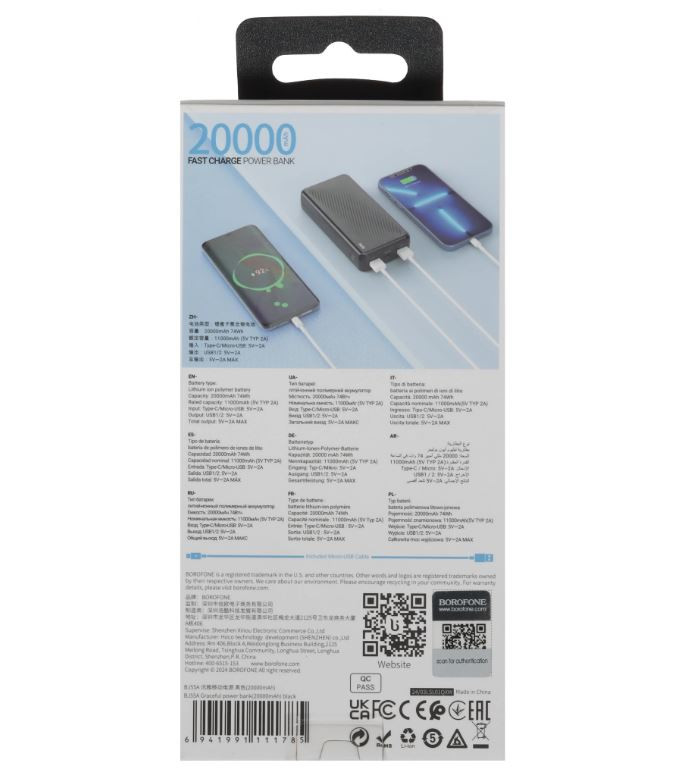 Представляем вашему вниманию внешний аккумулятор Borofone BJ55A с ёмкостью 20000mAh, идеальное решение для пользователей, стремящихся к автономности своих устройств. Этот мощный аксессуар представляет собой надёжный источник энергии для смартфонов, планшетов и других гаджетов, обеспечивая быструю подзарядку в любых условиях.