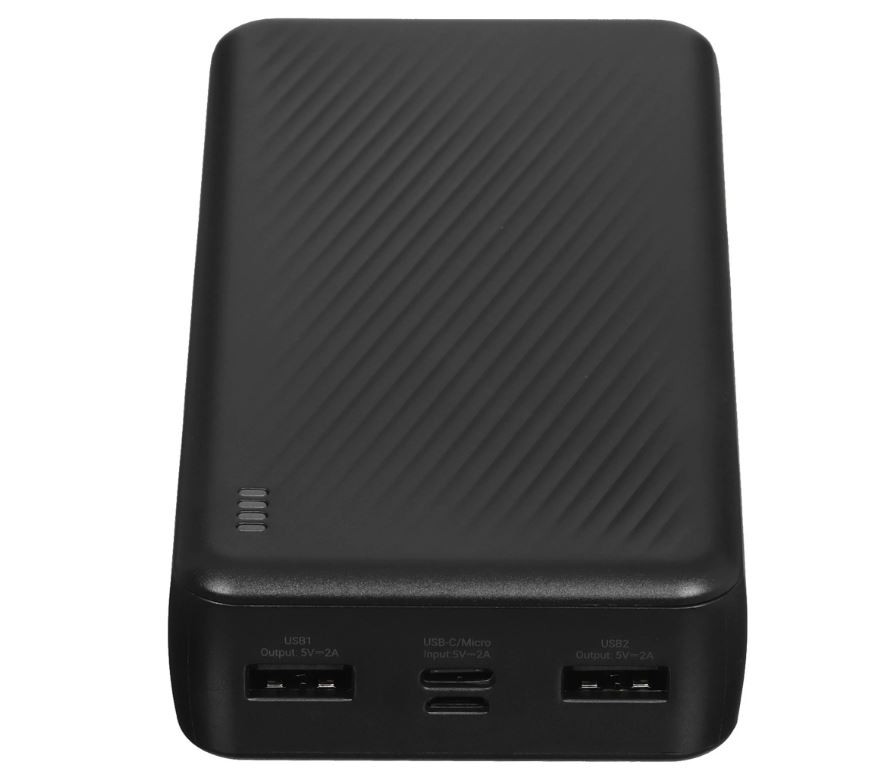 Внешний аккумулятор выполнен в стильном чёрном корпусе, который не только привлекательный, но и практичный в эксплуатации. Его компактные размеры позволяют легко помещать устройство в карман или сумку, что делает его отличным спутником для поездок, путешествий или повседневного использования. Благодаря высокой ёмкости, вы сможете многократно зарядить свои устройства, не беспокоясь о разрядке.
