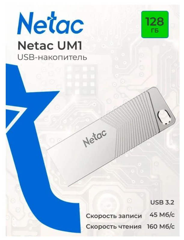 Флеш-накопитель USB 3.2 Netac UM1 белый/серебро. Никогда ранее процесс передачи данных внушительного объема не был настолько легким и быстрым, как с появлением памяти USB Flash Netac UM1. Весьма миниатюрная и невероятно легкая, она гарантированно станет вашей бессменной спутницей, куда бы вы ни собирались - в офис, командировку или путешествие. Перед началом эксплуатации памяти USB Flash Netac UM1 не требуется предварительная установка соответствующего ПО - просто подключите ее к разъему USB 3.0 или USB 2.0. В качестве материала для создания корпуса производитель использовал прочный металл, который устойчиво переносит наиболее агрессивные воздействия извне. USB флеш накопитель оптимально подходит как для копирования и переноса данных, так и для их продолжительного хранения. Пропускная способность интерфейса USB - 5 Гбит/сек. Этот показатель дает возможность эффективно использовать электронный флеш накопитель при записи и редактировании видео в формате Full HD и съемке и обработке фотографий с высоким разрешением. Высокоскоростная флеш карта с аксессуаром станет полезным подарком не только Вашим близким людям, но и друзьям.
