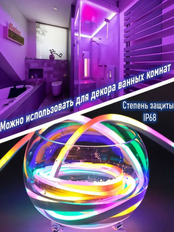 Яркая и универсальная гирлянда "Нить. Умная / Гибкий неон" RGB длиной 10 метров – идеальное решение для декора, подсветки и создания атмосферы в любом помещении или на улице!