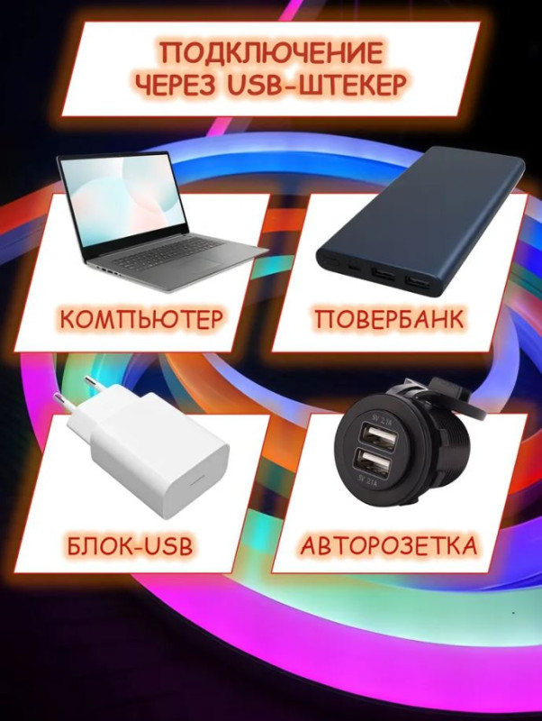 Мощность 5 В и питание от USB-штекера – подключайте к power bank, компьютеру, адаптеру или USB порту в машине без лишних проводов!