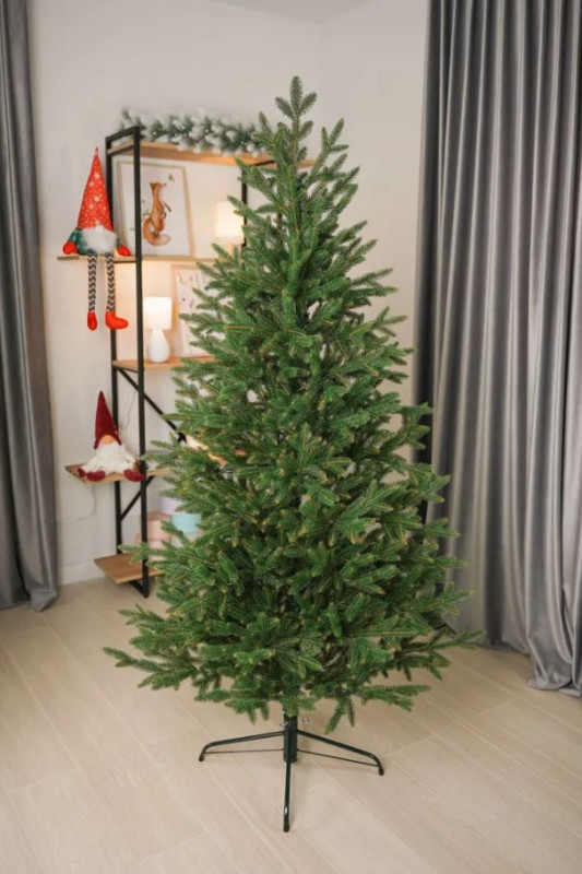 Искусственная ель классического силуэта изготовлена из высококачественного премиального материала. Она выглядит так же роскошно и естественно, как настоящая ель. Отгибная конструкция веточек позволит расправить их так, как понравится именно вам. Ёлка проста в сборке, имеет устойчивую подставку, не имеет едкого запаха.