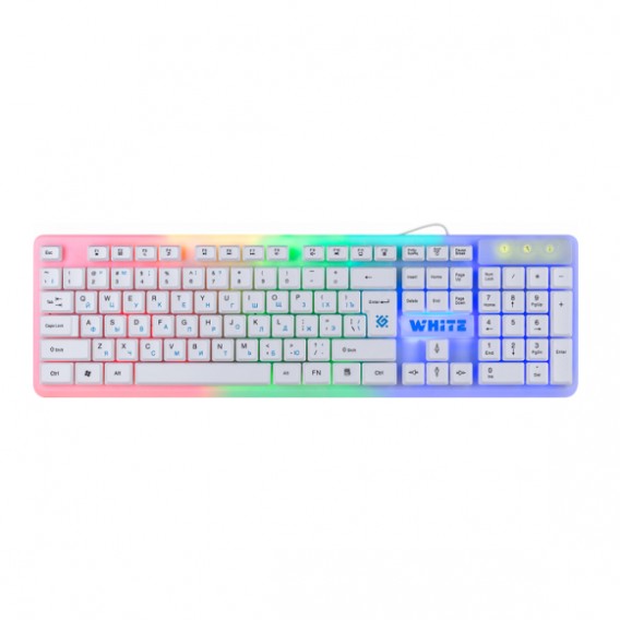 Проводная игровая клавиатура WHITE GK-172 - стильная белая клавиатура с радужной игровой подсветкой. Идеальное решение для начинающих геймеров! Радужная подсветка. Игровая подсветка. Подсветка клавиш. Увеличенная площадь клавиш-модификаторов (Ctrl, Shift), клавиш Enter и BackSpace. Угол наклона клавиатуры регулируется с помощью ножек. Горячие клавиши для быстрого доступа к офисным, мультимедийным и интернет приложениям. Возможность выключения подсветки.
