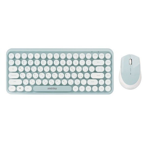 Комплект SmartBuy SBC-626376AG-M беспроводной мятно-белый. Легкая установка, для работы не нужны дополнительные драйверы. Питание: две AAА батарейки для клавиатуры и одна AA батарейка для мыши. Используется только один нано-ресивер для работы как клавиатуры, так и мыши.