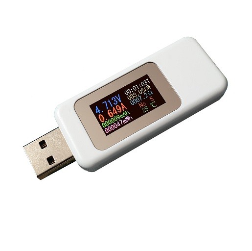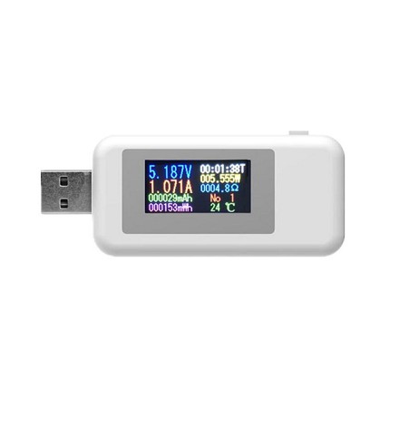 USB тестер для измерения напряжения USB портов, мобильных зарядных устройств, power-банка. Возможность одновременного наблюдения за напряжением и силой тока при зарядке мобильного телефона, планшета, МР3 плеера.