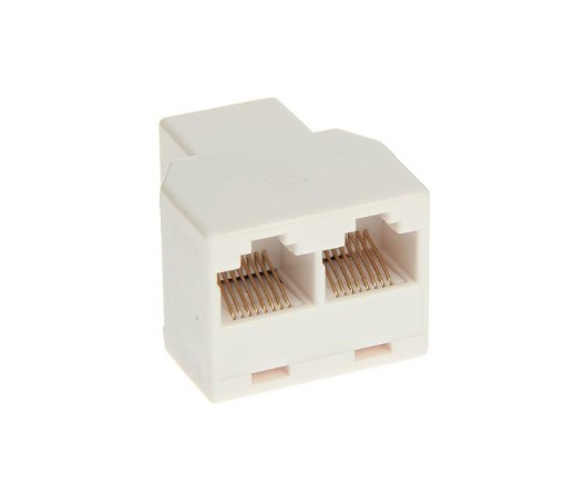 Переходник-разветвитель 2гн.8р8с-гн.8р8с (RJ45). Используйте изделие, чтобы получить два выхода для прокладки компьютерных кабелей и настройки телекоммуникационной сети.