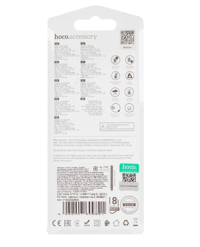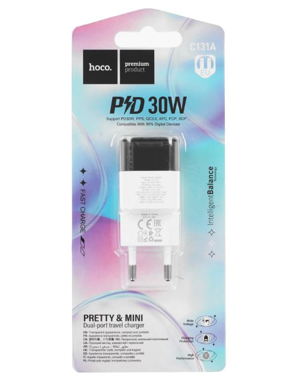 Сетевое зарядное устройство Hoco C131A - компактный адаптер питания, который подойдет для подзарядки мобильных устройств. Модель заменит собой штатный зарядный блок при его утере или поломке, благодаря чему вы сможете продолжить пользоваться вашим смартфоном. Конструкцией сетевого зарядного устройства Hoco C131A предусмотрены порты USB Type-A и USB Type-C, которые позволят одновременно подзаряжать два мобильных устройства. Выходная мощность адаптера питания равняется 30 Вт.