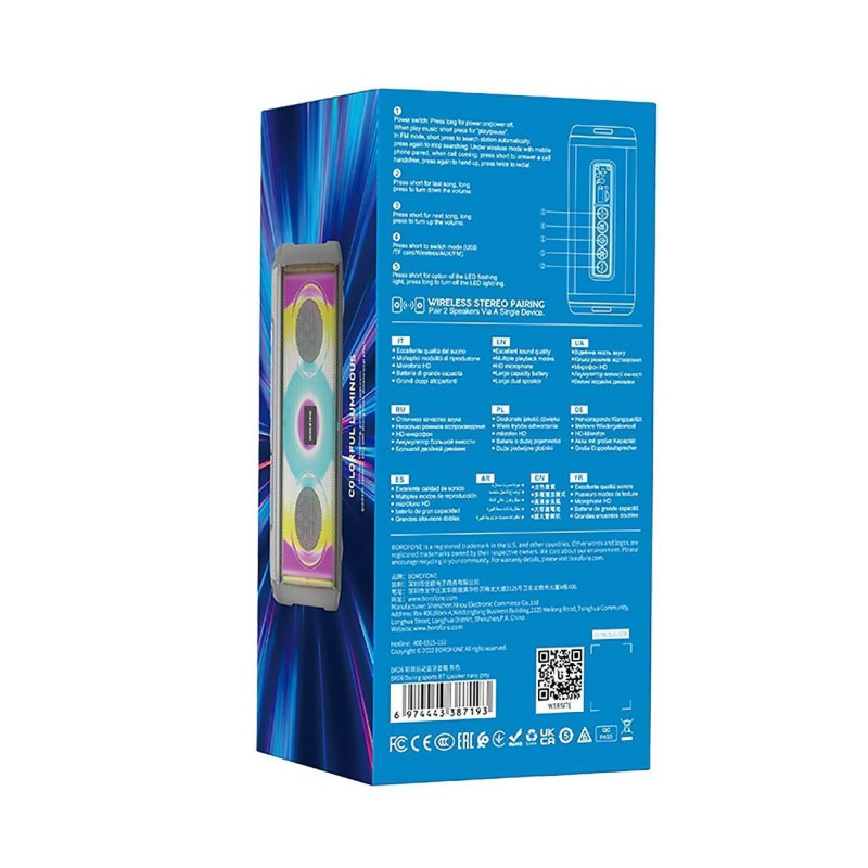 Портативные колонки — это не просто источник музыки, а способ выразить свою индивидуальность. Borofone BR26 — это надёжный и стильный гаджет, который благодаря своей универсальности станет верным спутником в путешествиях, на рыбалке, в походе или просто на вечеринке с друзьями.