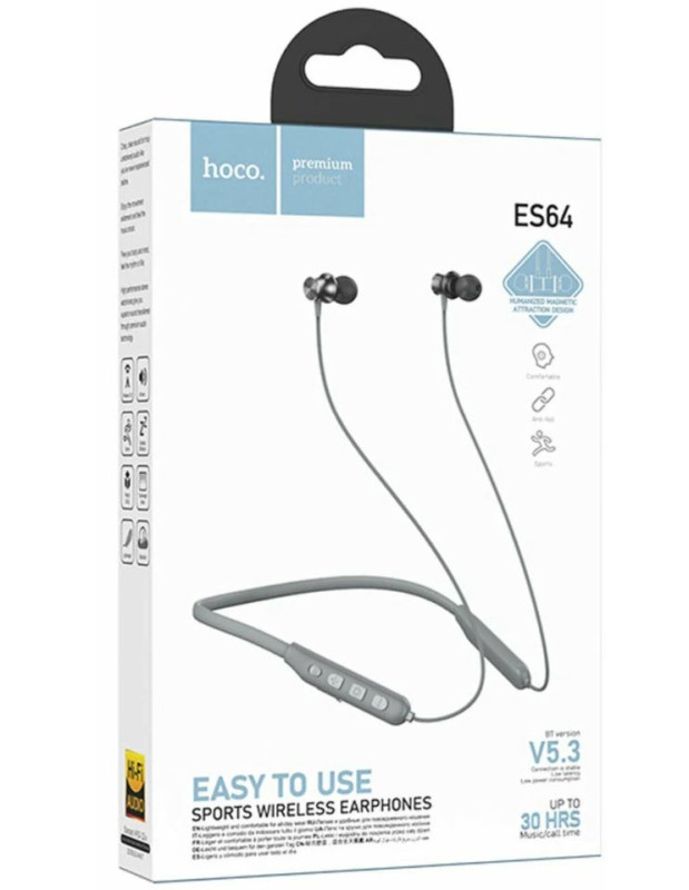 Беспроводные наушники Hoco ES64 спортивные с микрофоном, шейным ободом. Эта модель наушников обладает превосходным качеством звука, мощными басами а также технологией HI-FI. Благодаря удобной форме и шейному ободу, беспроводные наушники отлично подойдут для бега, фитнеса и других занятий спортом. Эти наушники подойдут для взрослых и детей, для мужчин и женщин, для мальчиков и девочек. Еще одно преимущество - данные беспроводные наушники не большие. У наушники беспроводные для андроид очень высокая скорость сопряжения с устройством. Спортивные наушники с функцией магнитного притяжения предотвращают их запутывания и уберегут вас от потери. TWS наушники hoco с микрофоном обладают стабильным сигналом wireless bluetooth с радиусом действия до 15 метров и особыми характеристиками электроники, что делает удобным использование наушников дома, на улице и тренировке. Высокая емкость аккумулятора подарит вам до 120 часов активного использования и до 1200 часов в режиме ожидания. Если вам надоели вечно путающиеся проводные наушники, вам не удобно носить с собой громоздкие накладные беспроводные наушники (наушники накладные беспроводные) и беспроводные наушники большие , то беспроводные наушники на андроид станут вашим лучшими друзьями. Встроенный микрофон позволяет говорить по телефону смартфону и обмениваться голосовыми сообщениями. Наушники совместимы со всеми устройствами: Android (андроид), IOS и Windows. Вы можете использовать данный аксессуар и как компьютерные наушники ( наушники для пк) и наушники беспроводные детские, просто подключив их через встроенный Bluetooth адаптер.