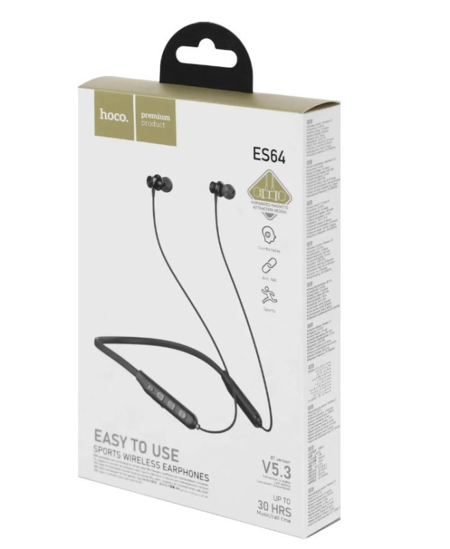 Наушники беспроводные Hoco ES64 держат до 30 часов музыки! Легкие и удобные для повседневного ношения, дизайн с магнитными наушниками и шейным ободком.