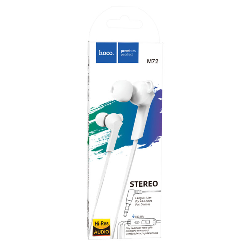 Наушники с микрофоном Hoco M72 - это надежные проводные вакуумные стереонаушники, идеально подходящие для повседневного использования. Благодаря своему эргономичному дизайну с продолговатой ножкой и мягкими силиконовыми амбушюрами, они обеспечивают комфортное использование в течение длительного времени. Эти наушники отличаются прочным пластиковым корпусом и имеют плоский кабель длиной 1.2 м, что предотвращает его спутывание. Удобный угловой штекер 3.5 мм обеспечивает надежное подключение к разнообразным устройствам, включая смартфоны, планшеты и ноутбуки с соответствующим разъемом. Технические характеристики включают диаметр мембраны 10 мм и сопротивление 22 Ом, что обеспечивает глубокое и насыщенное звучание в диапазоне от 20 Гц до 20000 Гц. На проводе расположен интегрированный микрофон с кнопкой управления, что делает возможным комфортное переключение между прослушиванием музыки и проведением звонков.