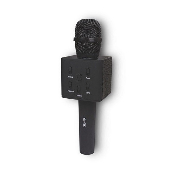 Atom КМ-250 – это беспроводной караоке-микрофон, объединяющий в себе функции микрофона и аудио-колонки. Устройство не только принимает звук, но и воспроизводит его. Караоке-микрофон отлично подойдет как для различных мероприятий, так и для домашнего пользования. Караоке-микрофон Atom КМ-250 выполнен преимущественно из пластика. Караоке-микрофон Atom КМ-250 легко подключается к смартфону с помощью Bluetooth версии 2.1. Требуемое расстояние до подключаемого устройства до 10м. Ёмкая батарея на 1800 мАч Li-ion, позволяет держать заряд от 3.5-х до 5 часов. Караоке-микрофон имеет широкий частотный диапазон от 100Гц до 10 000 Гц, что оптимально подходит для вокала. Караоке-микрофоном можно пользоваться даже в холодную погоду до -10 градусов. Atom КМ-250 имеет 2 динамика общей мощностью 10Вт, максимальная громкость составляет 115Дб, потребляемая мощность менее 8W. Имеются разъемы, питания DC5V, microUSB. Присутствует возможность регулировки эха, громкости голоса, громкости динамиков, баса.