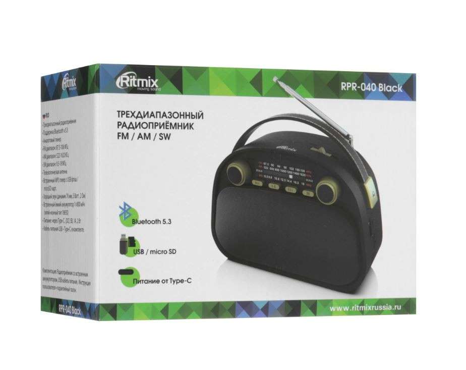Аналоговый тюнер Ritmix RPR-040 обладает обширным функционалом: устройство способно работать в режиме как радиоприёмника, так и портативной колонки.