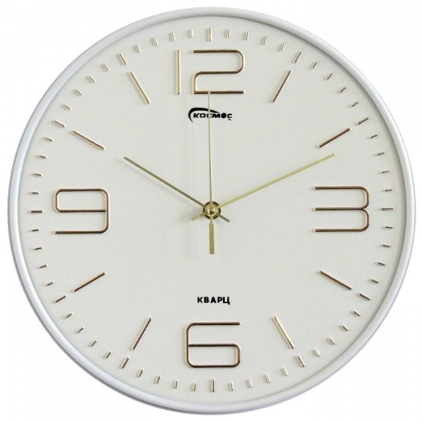 Часы настенные Космос 5568. Материал корпуса пластик, стекло минеральное, механизм кварцевый плавного хода секундной стрелки. Питание: батарейка АА (в комплект не входит).