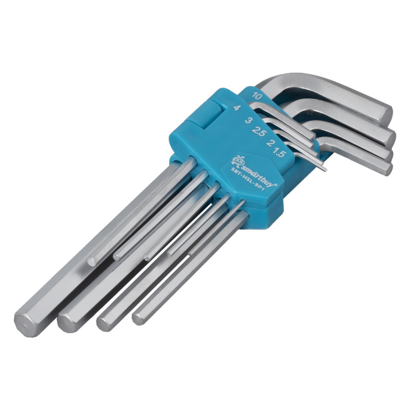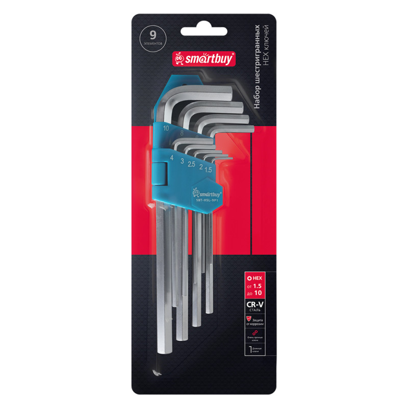 Представляем вам набор шестигранных ключей (HEX) Smartbuy tools. Этот качественный инструмент изготовлен из хромованадиевой стали (CR-V), которая известна своей прочностью и долговечностью. В наборе представлены ключи разных размеров, начиная от 1.5 мм до 10 мм, что делает его универсальным помощником в ремонтных работах.