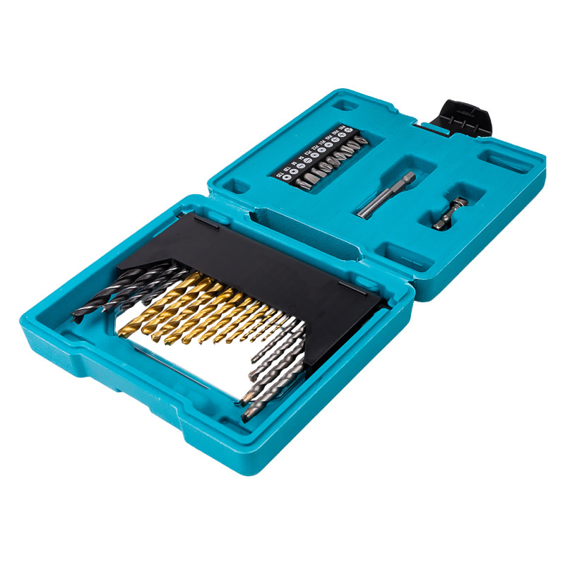 Набор сверл 31 предмет - все под рукой. Большой набор с небольшим шагом должен иметься в наборе любого домашнего мастера. Сверла по стали с размерами от 1.5 до 6.5 мм, буры по бетону от 4 до 7 мм, сверла по дереву от 4 до 8 мм позволят выполнить любую задачу по сверлению, а пластиковый кейс надежно позволит не потерять сверла. Качественная сталь сверл и буров позволит быстро и эффективно сверлить отверстия в твердых материалах таких как сталь, алюминий, медь, чугун, бетон, кирпич, древесина, а также твердых пластиках.