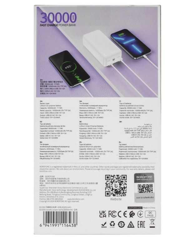 Выбирая внешний аккумулятор Borofone BJ55B 30000mAh, вы получаете надежный и мощный инструмент для зарядки вашего смартфона или других устройств в любое время, в любом месте.