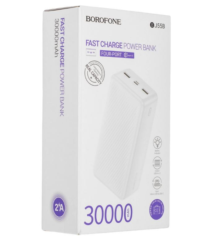 Внешний аккумулятор Borofone BJ55B 30000 mAh — это надежное и простое в использовании портативное зарядное устройство, которое станет незаменимым помощником для активных и деловых людей.