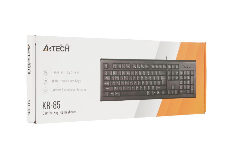 Стандартная и универсальная клавиатура модели A4 KR-85 станет удачным выбором для оснащения абсолютно любого рабочего стола и отлично подойдет как для работы или учебы, так и для развлечений и игр. Стильный и лаконичный дизайн этой клавиатуры в классическом черном цвете предусматривает традиционное расположение клавиш и наличие цифрового блока для максимального удобства использования. Клавиатура A4 KR-85 оборудована клавишами особой эргономичной формы, которые удобны при нажатии и обеспечивают наилучший отклик для работы. Подключается к компьютерам или ноутбукам посредством кабеля и стандартного порта USB, обеспечивая стабильную и бесперебойную связь в процессе использования. Эта клавиатура совместима с любыми гаджетами, оборудованными USB-входом, а также с любыми операционными системами.