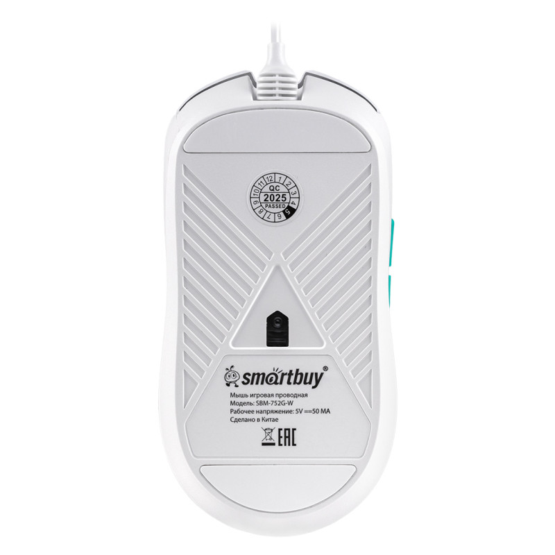Мышь проводная SmartBuy SBM-752G-W USB, игровая с регулируемым разрешением курсора 1200/1600/2400/3600/4800/7200 dpi, бесшумными кнопками и радужной подсветкой - воплощение надежности и современного дизайна.