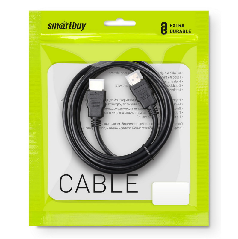 Кабель HDМI - HDМI (шт/шт) 1,5м ver.1.4, SmartBuy K-315-140 служит для подключения HDMI монитора к разъему HDMI видеокарты или для подключения плеера с выходом HDMI ко входу HDMI телевизора.