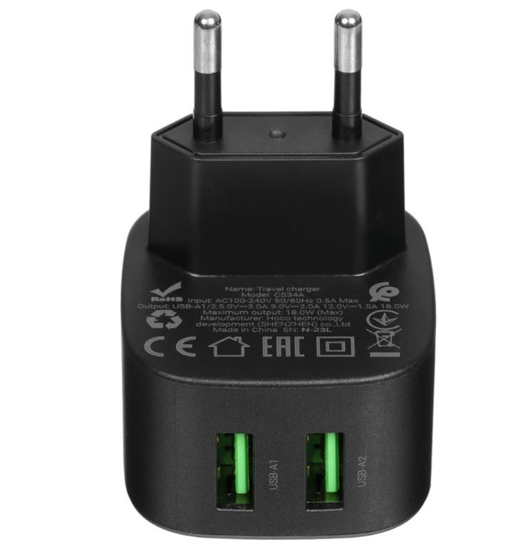 Зарядка с высокой мощностью: Сетевое зарядное устройство 2 USB стандарт зарядки QC3.0 18W быстро заряжает ваши мобильные устройства, обеспечивая быструю зарядку аккумуляторов ваших устройств.